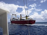Entre Tahaa et Bora-Bora, rencontre avec le Taporo qui assure la desserte inter-insulaire |