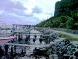 Alain tient la pension "Maupiti Village" situé sur un des motus à l'entrée; c'est lui que nous avions interrogé par téléphone auparavant pour savoir si la passe était praticable ce jour là |