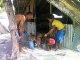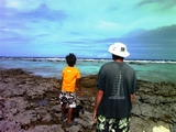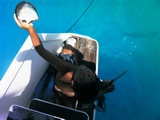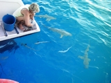 Quand je nettoie le poisson pêché pour le repas, les rémoras viennent à me toucher, mais les requins s'enhardissent aussi! |