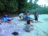 Chacun s'anime à tour de rôle à entretenir le feu |