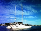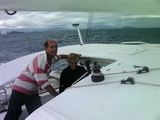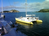 Une nouvelle annexe pour le Catafjord négligemment attachée à l'arrière? non! c'est notre ami Eric Hubert qui vient prendre le café avant de partir pour Les Vanuatu |