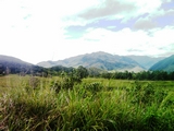 Paysages vallonnés; la montagne est parfois rabotée, le développement économique de La Nouvelle-Calédonie étant lié à l'exploitation du minerai |