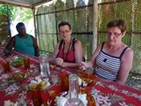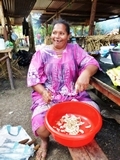 Petou vient remettre un peu de discipline, et nous invite sur le site où la famille et les amis du marié s'activent à la préparation du mariage | Elle nous sert un super déjeuner où nous savourons les spécialités locales tout en apprenant un peu plus sur leurs traditions |