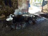 Cà mijote dans les gamelles pour nourrir tout ce monde. Nous reprenons notre route vers l'annexe, enchantés de cette rencontre avec la tradition canaque |