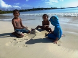 Petit déplacement de l'ancre dans la baie Kuto...on a sorti les casques et tout! |