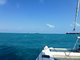En approchant le port de Mackay, notre première escale australienne, une myriade de cargos mouillés |