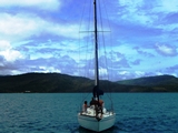 Nous la percevons comme une ville touristique, avec de nombreux établissements festifs; nous sommes contents de retrouver de l'animation après notre croisière dans les îles | Mouillages ou marinas, il y a des voiliers partout; c'est vrai que d'ici le beau bassin de croisière qu'offrent les îles whithsunday est à portée de voile | On s'équipe de combinaisons en lycra; préférable pour nager sur la côte Australienne, vu le danger que représentent certaines méduses |