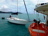 Avec son frère Simon, ils viennent d'acheter un bateau qu'ils basent à Airlie. Ils viennent prendre un p'tit déjeuner à bord |