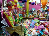 Nous flânons, entre autres, dans une boutique réputée pour ses objets hétéroclites , variés et colorés |