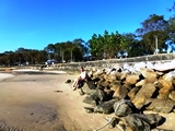 Dernière escale avant Brisbane, dans Moreton Bay, devant Bongaree sur Brisbie Island |
