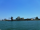 L'embouchure du fleuve Brisbane est situé dans la baie Moreton. Au début du fleuve les installations industrielles et le port de commerce |