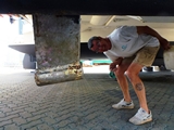 A peine au sec, un puissant jet de karcher pour luire faire une première toilette; il faudra quand même de longues heures de grattage et de ponçage ensuite |