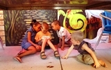Cependant que nous appécions les bons mets et la convivialité du lieu, les enfants se partagent la console |