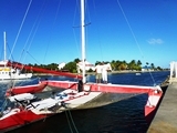 Notre promenade dominicale nous met nez à nez avec le trimaran "Claire" que nous avions construit Domi et moi en 1983. Il vient de changer de propriétaire. Ce dernier en profite pour poser moult questions |