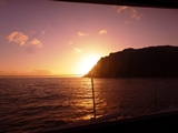 Mais peu après leur ancrage, alors que la lune se lève, la houle entrante crée un roulis insupportable pour le monocoque de nos amis |