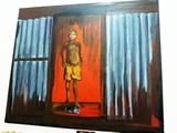"All Alone" peinture inspirée de l'évacuation, par l'armée lors de la seconde guerre mondiale, des aborigènes du Cap Bedford vers Woorabinda où 1/3 d'entre eux moururent |
