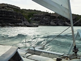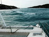 Nous avons un fort courant contraire (plus de 5 noeuds); il aurait fallu se présenter 2h plus tard par rapport à la marée |