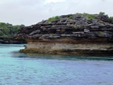 Nous continuons notre progression vers l'Ouest; nous franchissons "le trou dans le mur" passage étroit entre les îles Raragara et Guluwuru |