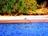 Ce n'est pas le cas pour les singes qui de temps à autre font une incursion au bord de l'eau |
