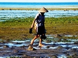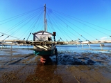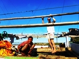 Tout un maillage de sustentes retient la frêle structure où marchent les pêcheurs pour récupérer les poissons pris dans le carrelet |