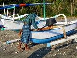 A l'autre bout de la plage, les bateaux sont ceux du village voisin; l'ambiance y est aussi paisible |