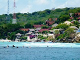 Courte escale sur l'île Lembogan au sud-est de Bali; touristes et surfers se partagent le site |