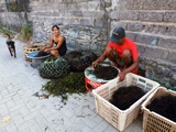 Sur les murets sèchent des algues que les habitants cueillent et nettoient préalablement |
