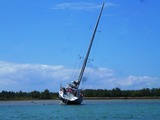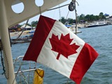 Le pavillon de Juli flotte joyeusement pour notre départ vers d'autres horizons |