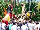 Les animaux sont déposés sur le terrain où se tient la cérémonie; les préparatifs sont encours |