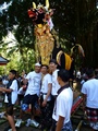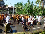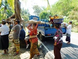 Nos efforts sont récompensés et nous arrivons sur le lieu de la crémation avant le cortège. Un camion avec une moto-pompe arrosent les porteurs épuisés |