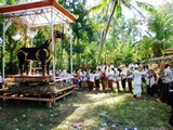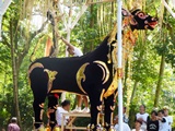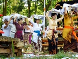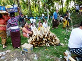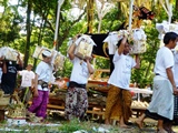 Commence pour chaque caste, le défilé autour de l'animal; 3 fois le tour; les hommes portent les ossements |