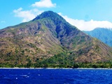 Nous longeons la côte Est de Bali en direction du Nord. Reliefs, et en bas sur toutes les plages les pirogues entassées |
