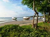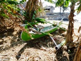 Le lendemain matin nous allons poser l'ancre devant le village, et mettons le kayak à l'eau pour rejoindre la plage |