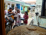 Puis Nassir nous conduit à sa maison; les petites chipies de voisines sont bien tentées pour essayer nos vélos |