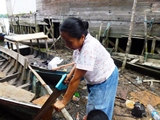 Un peu plus de moyens pour la fabrication d'un klotok; les klotok sont des péniches qui sont beaucoup utilisées pour visiter le parc national de Tanjung Puting |
