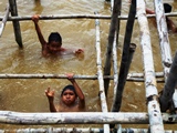 La couleur de la rivière ne rebute pas les enfants pour la baignade... |