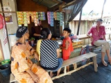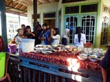 Sympatique ambiance lors du déjeuner dans le warung : délicieuse soupe aux nombreux légumes avec un peu de viande, beignets de légumes, puis beignets de bananes : moins de 1€ pour 2! |