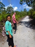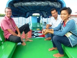 Notre embarcation : une péniche d'une dizaine de mètres un "Klotok" . L'équipage : une jeune guide, Nina, un capitaine et son mouuse, une cuisinière |