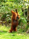 De très grands bras (jusqu'à 2 mètres) et de longues mains.; pieds et mains ont une forme presque semblable. |