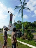 Surprenant ce cocottier en plastique près du monument de commémoration |