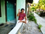 Yono nous invite à le suivre dans sa maison pour nous offrir un verre et des gâteaux |