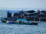 A Belinyu, au nord de Bangka; nous sommes entourés de bateaux équipés pour pêcher les alluvions |