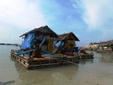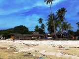 et nous déménageons à quelques milles devant un curieux village; les maisons sur pilotis du bord de plage sont très rustiques, presque délabrées |