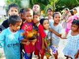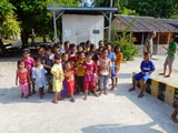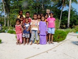 Les enfants de ce petit village de pêcheurs abritant une centaine de personnes se pressent autour de nous |