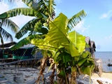 La petite rue qui longe le village est bordée de bananiers et de fleurs |