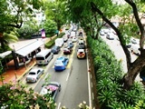 Malgré la circulation et les grands axes routiers, on trouve le moyen de faire notre circuit dans la ville à pied |