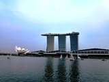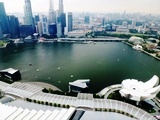 et son étonnant complexe hôtelier de Marina Bay Sands, sur 57 étages . Le toit unique des 3 tours abrite une piscine grande comme 3 terrains de foot |