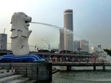 A l'embouchure du fleuve la mascotte de Singapour : "Le Merlion" mi-poisson, mi-lion. Fin de journée par un dîner dans le quartier de Chinatown |