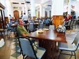 Kuala Lumpur City Galley, où l'employée nous donne l'adresse de "leur cantine" juste à côté |
