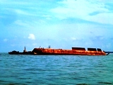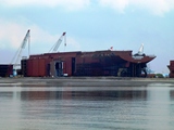 Quittons la marina de Pulau Indah; longeons le chantier de construction de barges nous interrogeant comment ils les mettront à l'eau |
